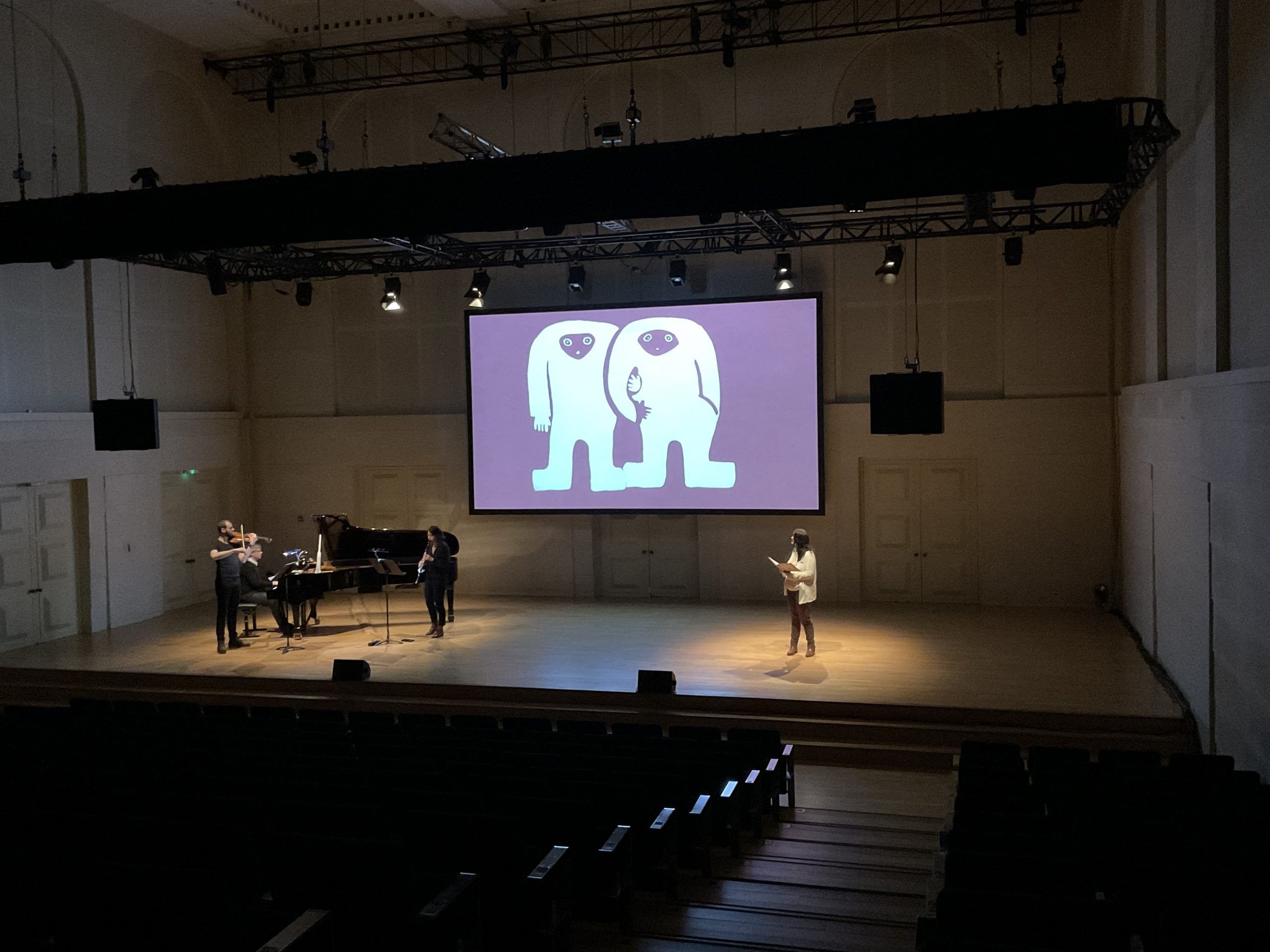 Imaginé et créé par la célèbre peintre Maria Helena Viera da Silva et l’écrivain Pierre Guegen, cet ouvrage original publié en 1933 est mis en musique en 2019 par le compositeur Sergio Azevedo. Les trois interprètes conversent avec l’animation vidéo réalisée par Maud Alessandrini sur les peintures originales tandis que Maria de Meideros prête sa voix à la narration. La poésie de l’histoire, son aspect surréaliste, la beauté des dessins et l’évocation des paysages que traversent les protagonistes donne naissance à un conte musical inspiré et envoûtant.